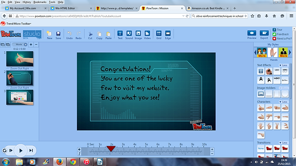 I played around with one called PowToon, a website that is free of charge that allows children to make animations from the templates provided. These animations allow you to put images, music and voice over onto the document which can then be shared with the class. There are a variety of templates readily available on the website, allowing children to pick the one that best suits their theme or topic. These woruld also be great to use as a 'Wow' factor to start a piece of work or investigations.